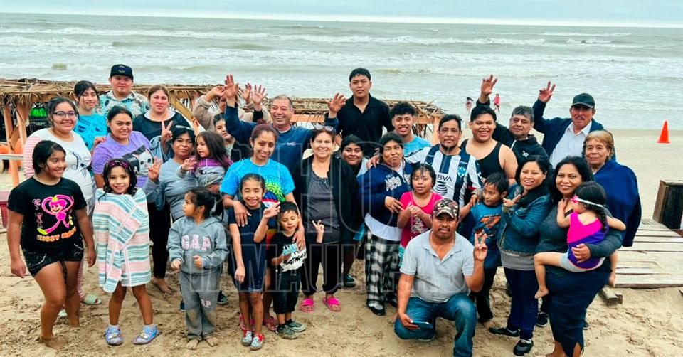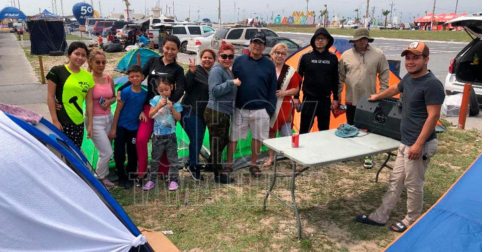 Familia regia de 44 integrantes acampa en Playa Bagdad pese a mal clima