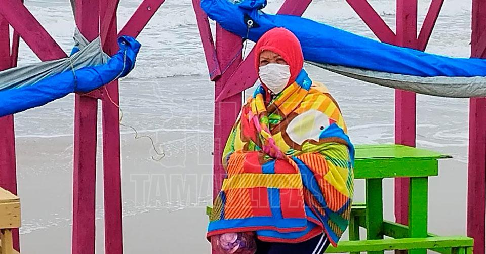 Turistas cambian el traje de baño por cobijas en Playa Bagdad