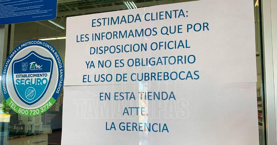 Retiran en algunos centros comerciales de Matamoros uso obligatorio del cubreboca