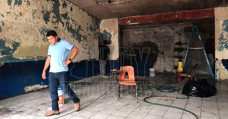Avanza la rehabilitación del aula quemada en escuela de Matamoros