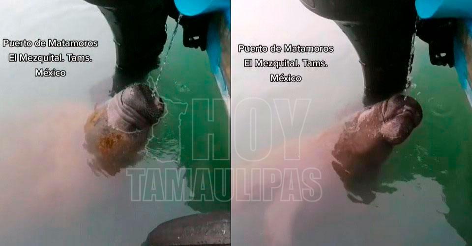VIDEO: Llegó un manatí al puerto de Matamoros