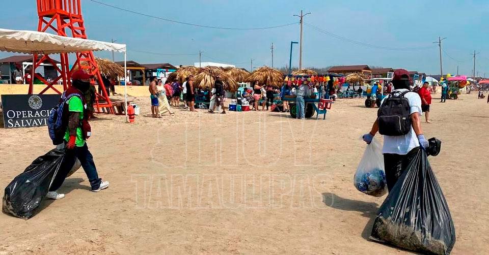 Retiran hasta ocho toneladas de basura los fines de semana de Playa Bagdad