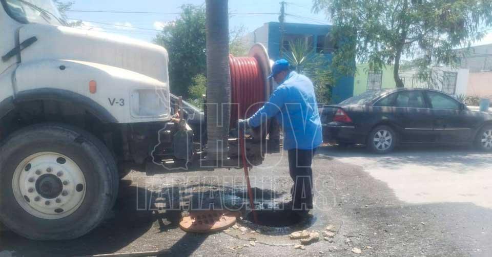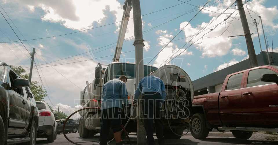 Gobierno de Matamoros realiza limpieza en líneas de drenaje en la Colonia Sección 16