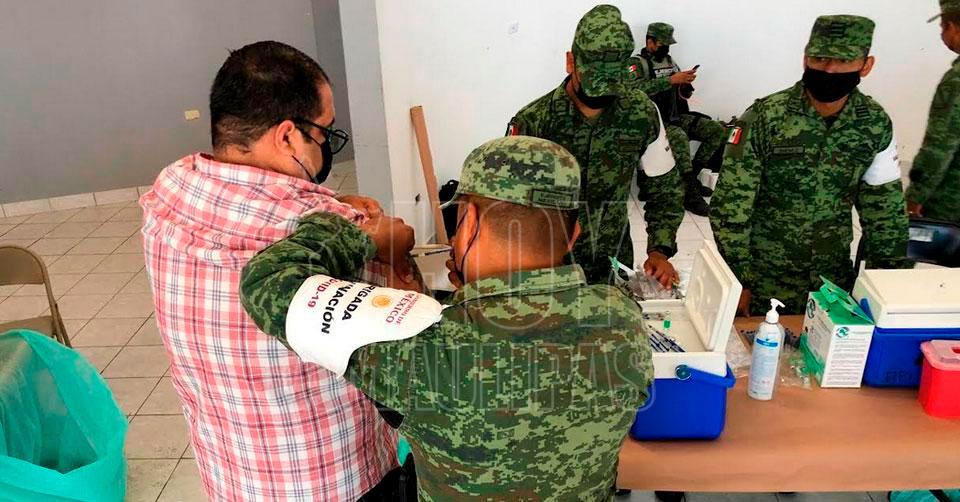 Por: Personal militar aplicando la vacuna antiCovid a una persona en uno de los módulos de Matamoros