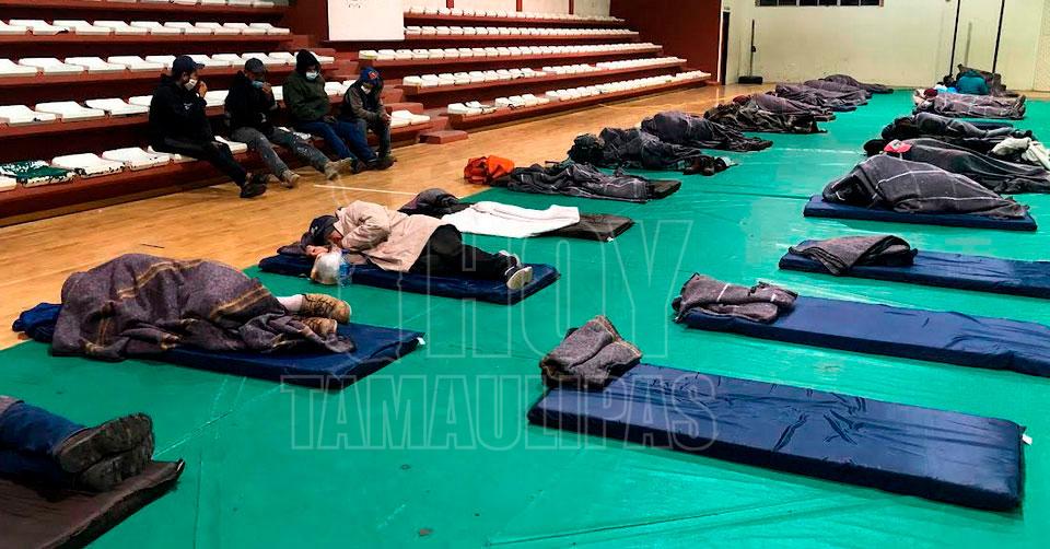 Hay 30 personas protegiéndose del intenso frío en albergue en Matamoros