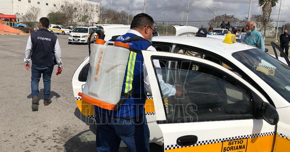 Desinfectan a mil 500 taxis en Matamoros