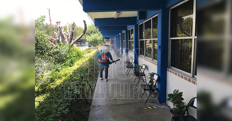 Sanitizan empresarios y partido político escuelas de Matamoros