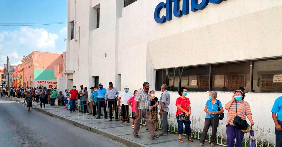 Con largas filas inician con el pago de 65 y Más en Matamoros