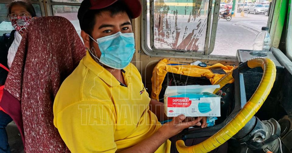 Microbusero en Matamoros regala cubrebocas a sus usuarios