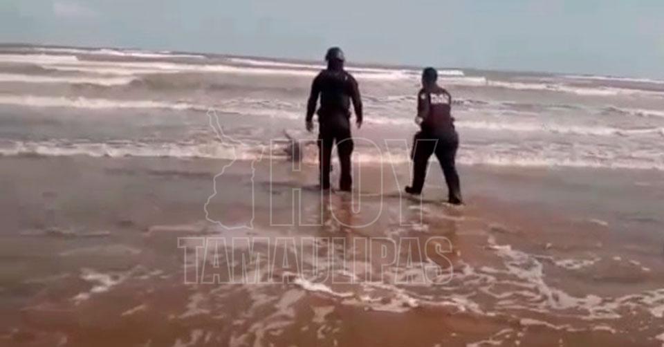 Policías estatales rescatan delfín encallado en playa de Matamoros