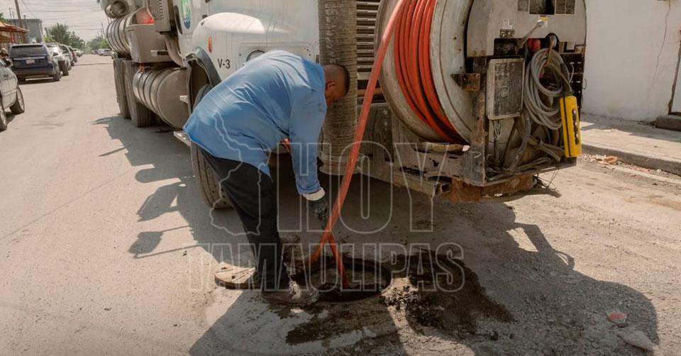 Avanzan trabajos de mantenimiento en drenaje sanitario del centro de Matamoros