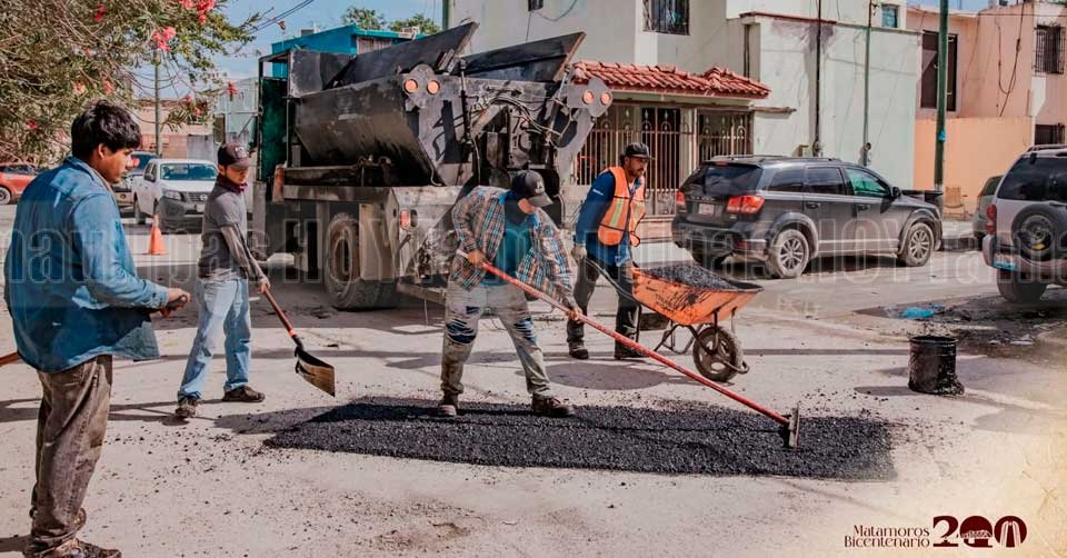 Refuerzan mejoramiento vial en colonias y zonas de alta afluencia en Matamoros