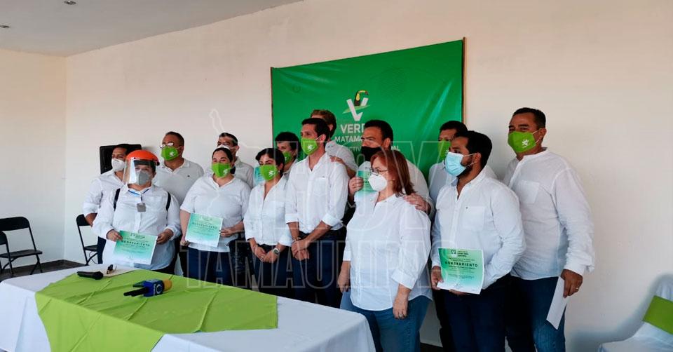 Sin respetar la sana distancia, directiva del Verde toma protesta en Matamoros