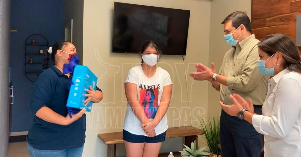 Entrega Ivett Bermea otras dos laptops en Matamoros