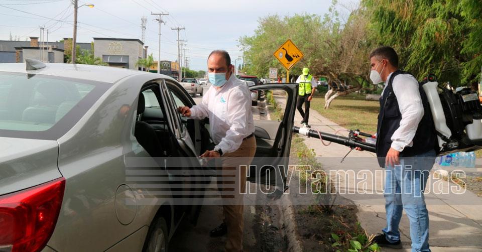 Covid-19: Desinfectan vehículos en Arboledas en Matamoros