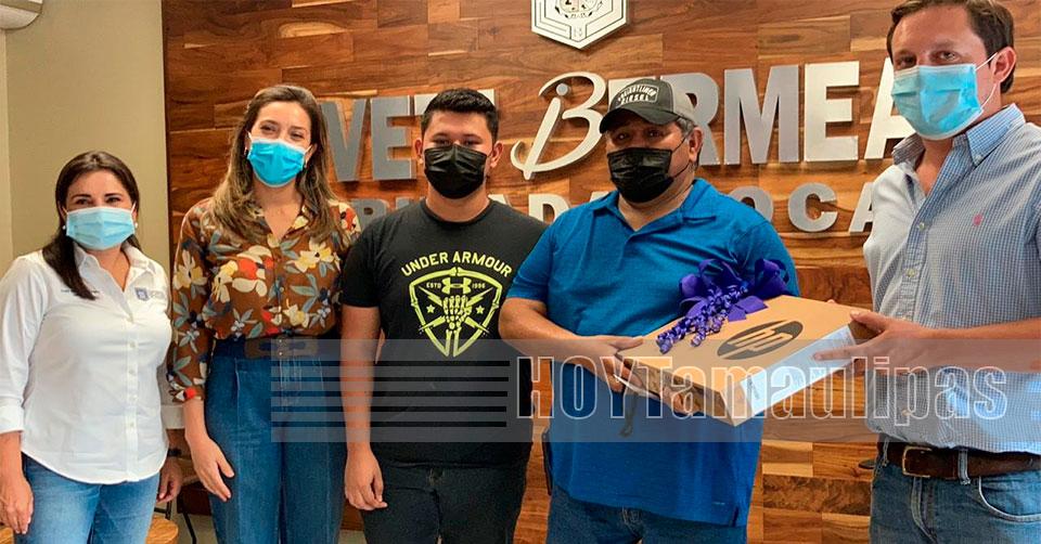 Ivett Bermea junto a empresarios y regidores entregan 2 laptop