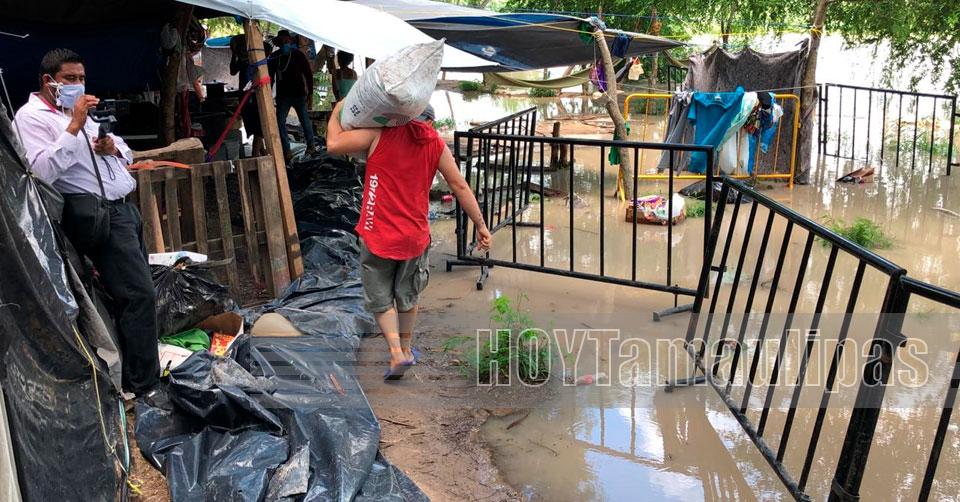 Comienza a inundarse el campamento de migrantes en Matamoros; no han sido evacuados