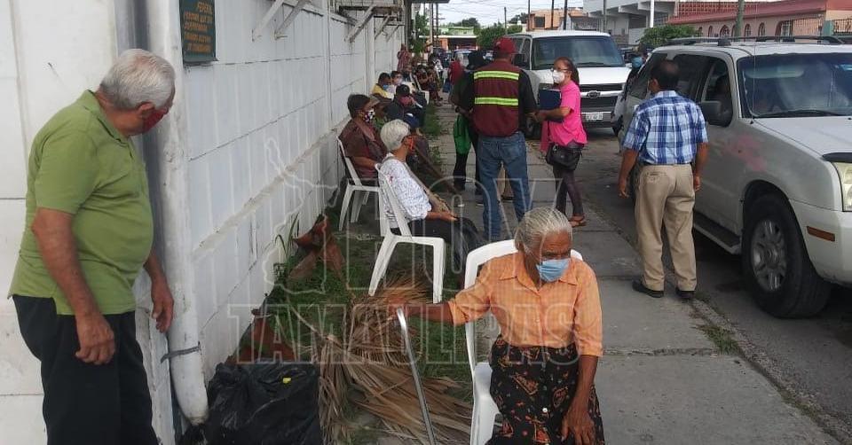 Abuelitos tienen que hacer fila para cobrar sus pensiones en Matamoros
