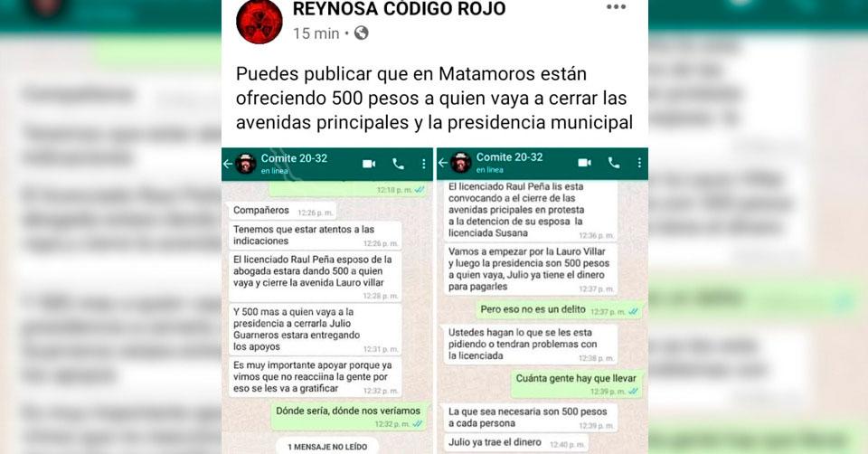 Denuncian supuestos pagos a seguidores de Susana Prieto para bloquear calles en Matamoros