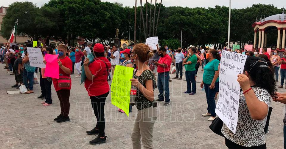 Seguidores de Susana Prieto protestan frente a presidencia municipal de Matamoros