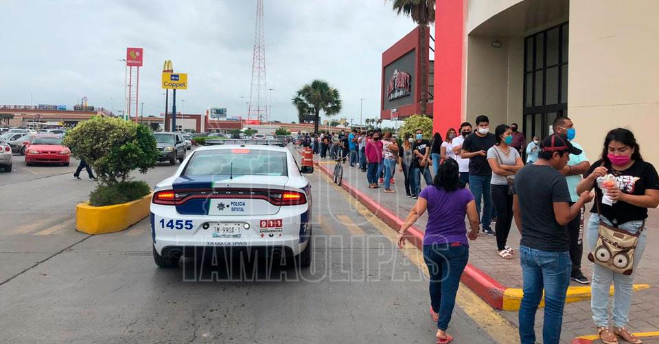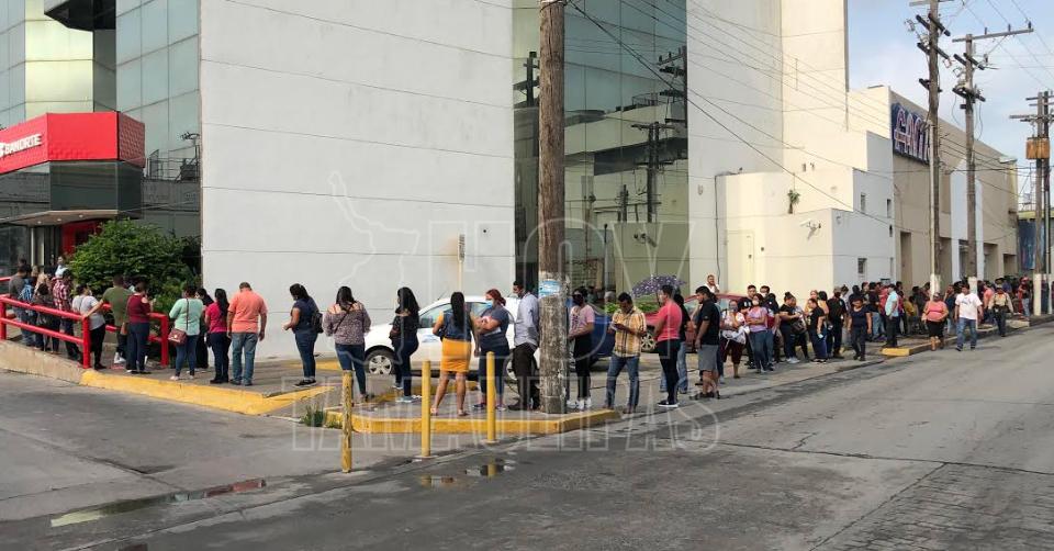 Largas filas en el Banamex de Plaza Fiesta de Matamoros