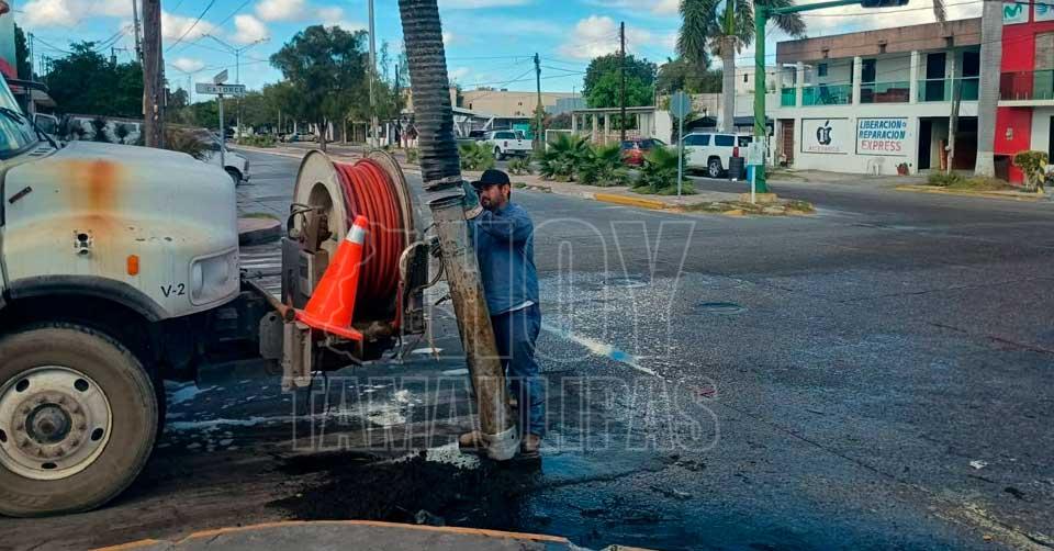 Trabajos con vactor destapan drenaje obstruido por basura en varias colonias de Matamoros