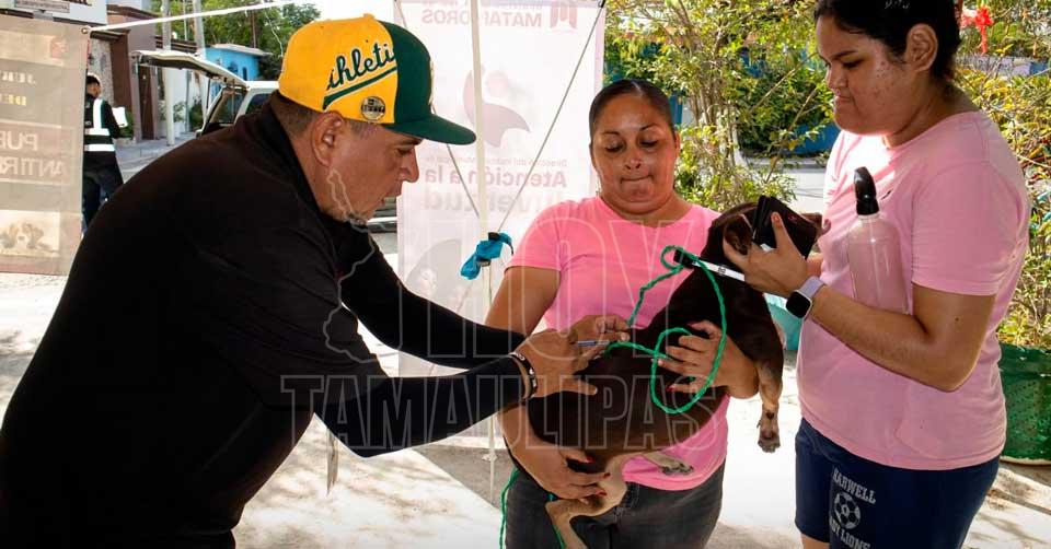 Refuerzan salud animal con brigada antirrábica en Cabras Pintas en Matamoros