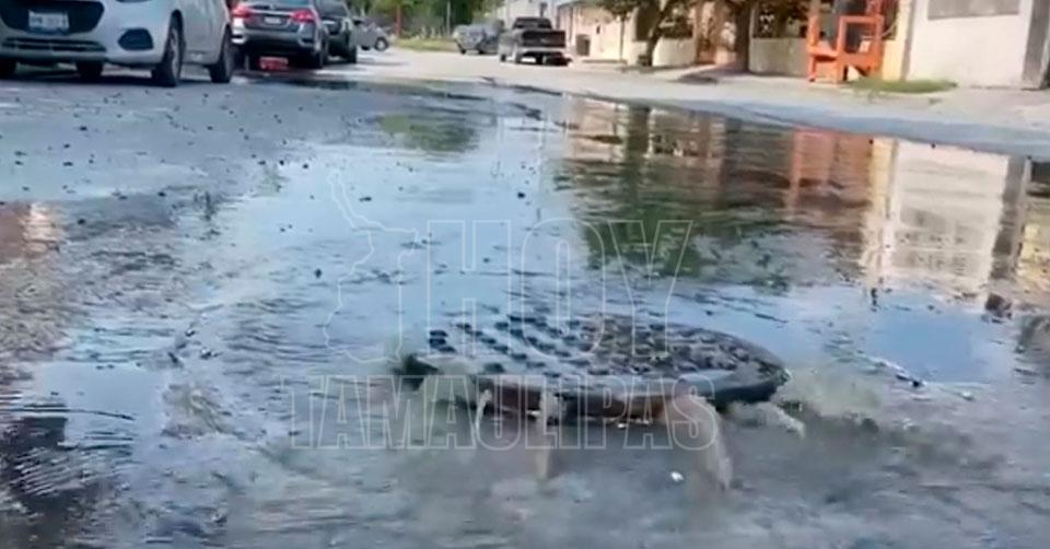 Reportan otra fuga de aguas residuales en Reynosa