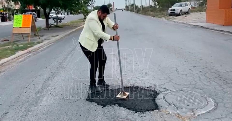 Candidato a la Alcaldía de Reynosa emprendió campaña de arreglo de baches