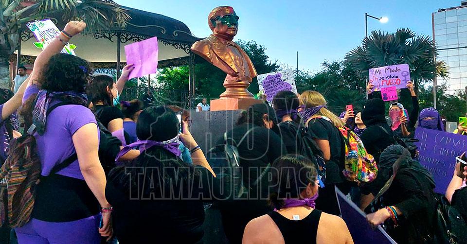 ¡Lo vuelven a hacer! Feministas se manifiestan con pintas a monumentos en Reynosa