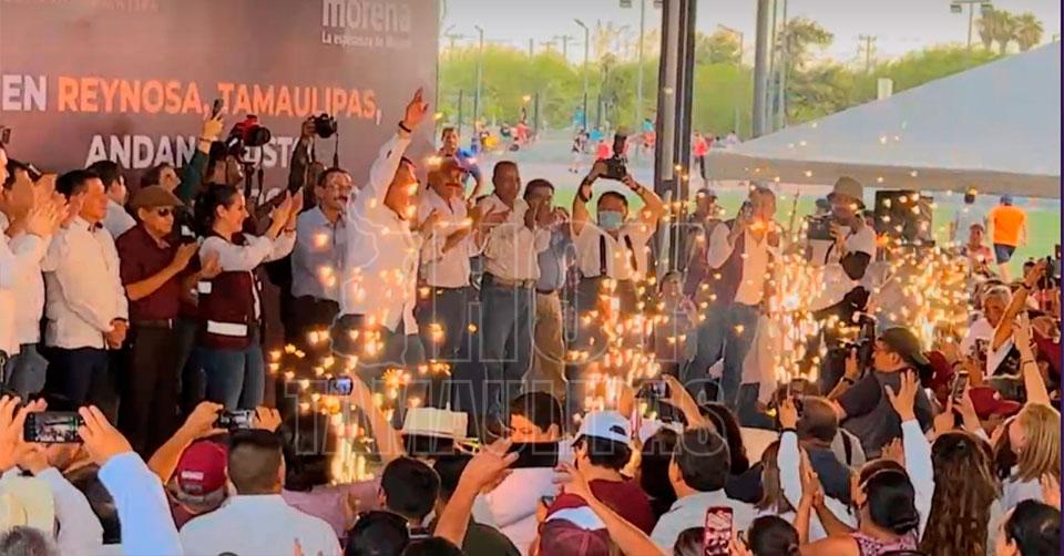 Con fuegos artificiales recibieron en Reynosa a Adán Augusto
