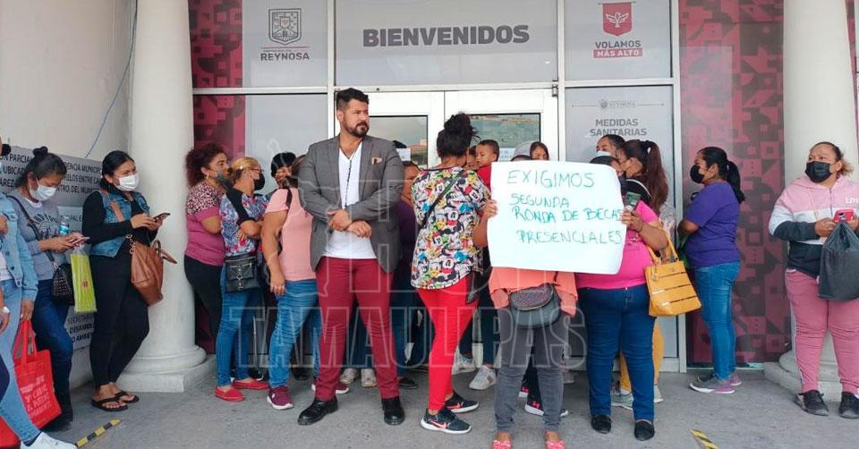 Manifestantes cierran Presidencia de Reynosa en demanda de beca escolar para sus hijos