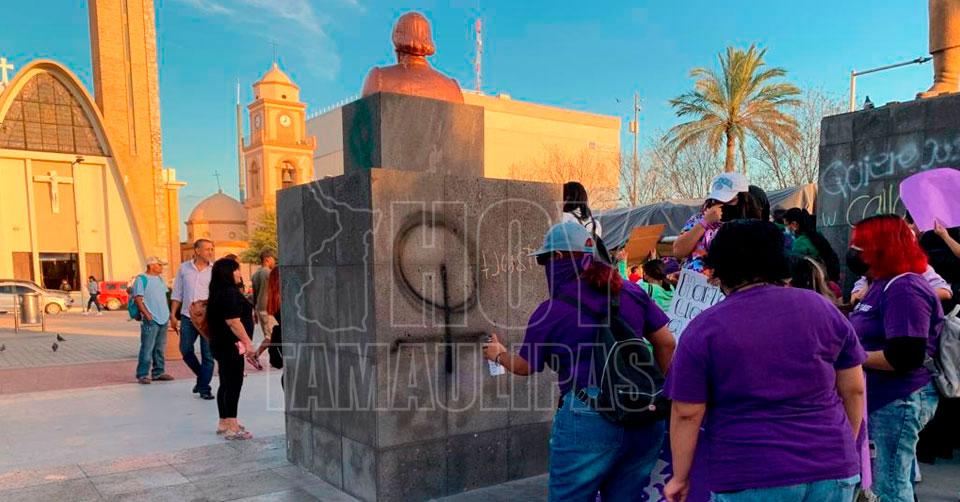 Feministas vandalizan monumentos durante manifestación en Reynosa