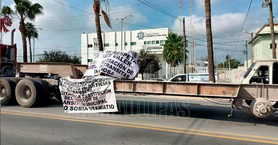 Manifestación traileros: Exigen la destitución del director de Tránsito en Reynosa