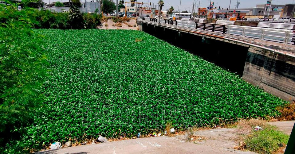 Continúa invadido de lirio acuático el canal Anzaldúas de Reynosa