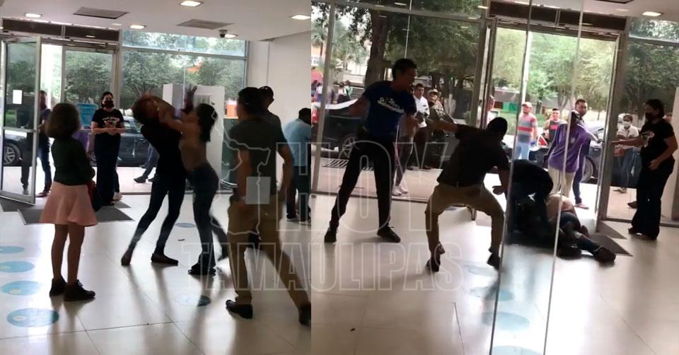 VÍDEO: Captan pelea de parejas en banco de Reynosa