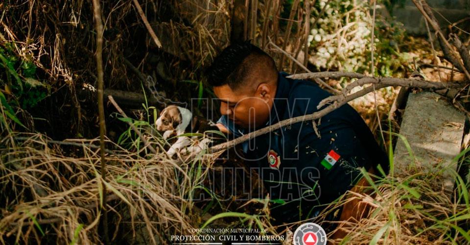 ¡Héroes! Bomberos rescatan a familia de perritos en Reynosa