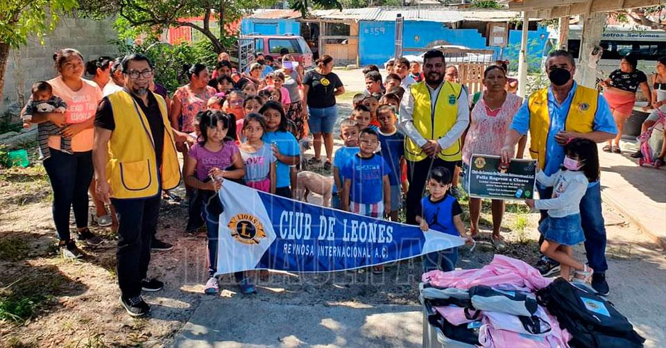 Integrantes del Club de Leones Internacional de Reynosa reparte paquetes escolares