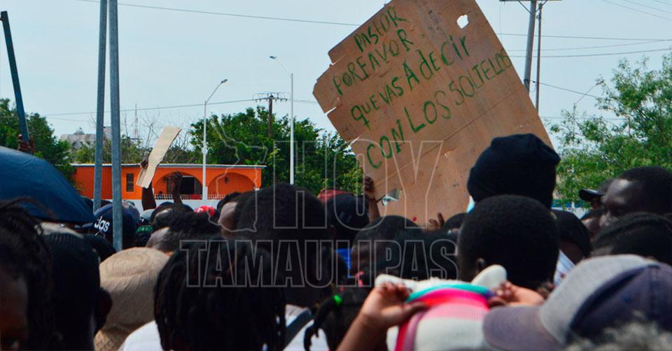 Se manifiestan migrantes solteros ante albergue Senda de Vida en Reynosa
