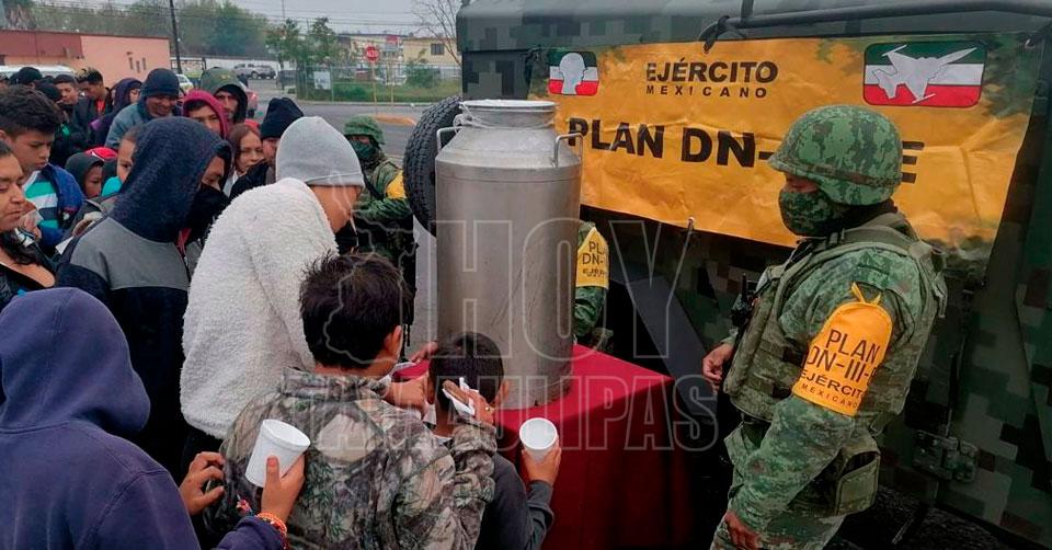 Apoya Ejército a personas vulnerables por bajas temperaturas en Reynosa