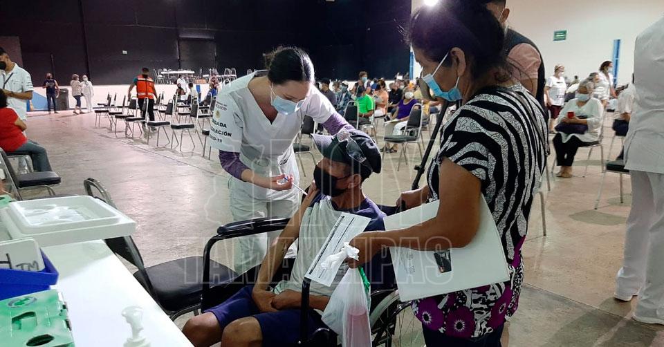 Acuden cientos a vacunarse contra el Covid-19 en Reynosa