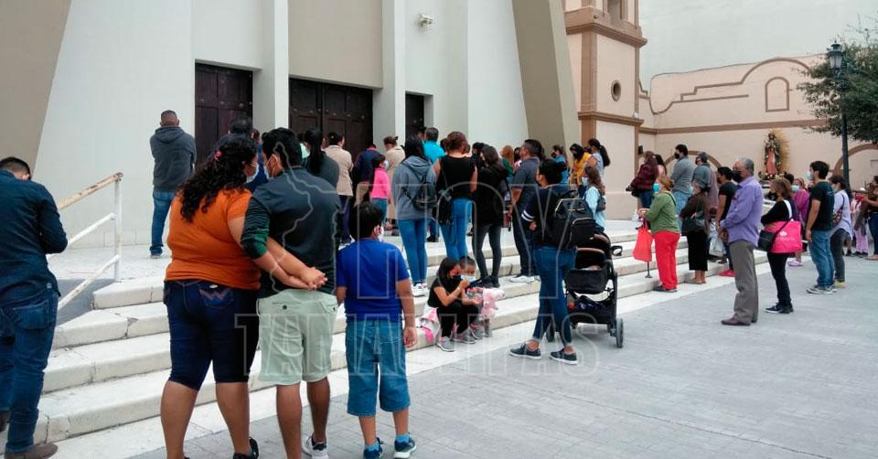 Escuchan misa afuera de la Iglesia de Guadalupe en Reynosa