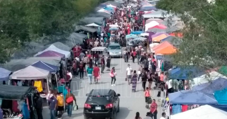 Desafiando al Covid-19 salen a realizar compras en Reynosa
