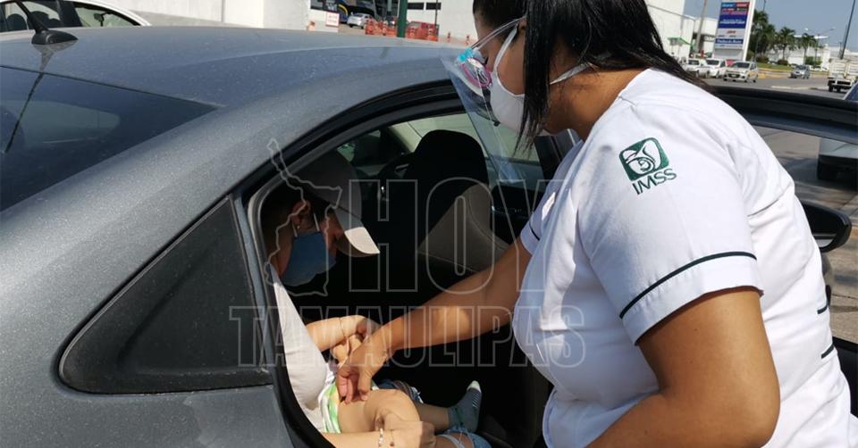 Buena respuesta a campaña “Vacúnate en tu auto” del IMSS en Reynosa