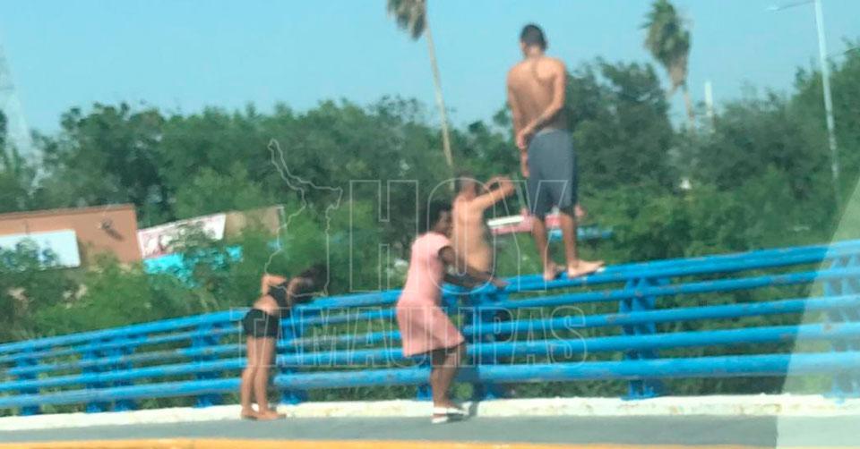 Intensa ola de calor en Reynosa; unos aprovechan para meterse al agua del canal