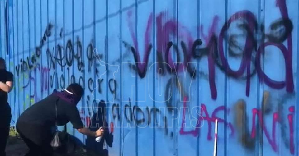En Reynosa: Pintan feministas instalaciones de PC por presuntos delitos sexuales