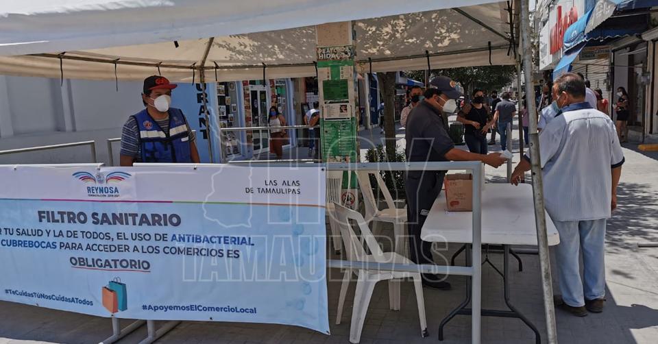 Colocan filtros sanitarios en la peatonal Hidalgo de Reynosa