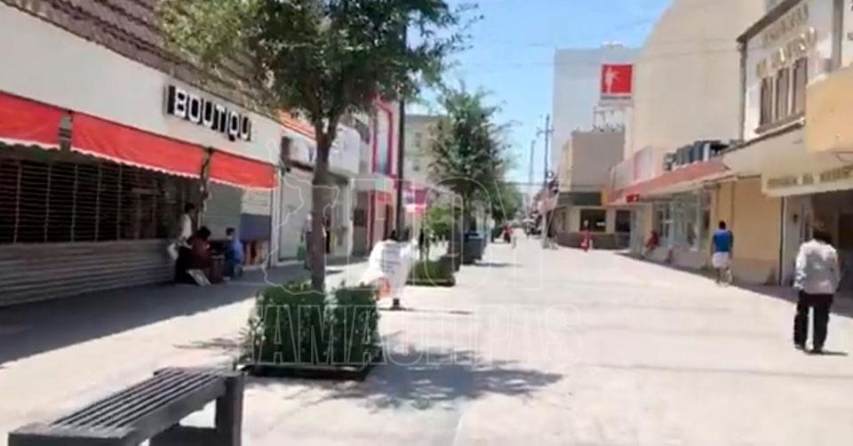 Desértica, así luce hoy la calle peatonal Hidalgo en Reynosa