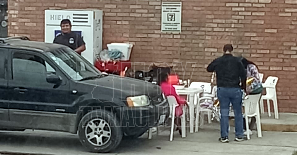 Empleados celebran en exterior de una tienda Seven Eleven de Reynosa