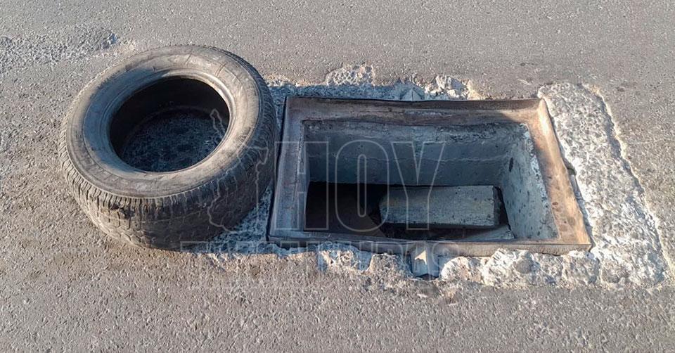 Alcantarilla abierta en Bulevar Hidalgo de Reynosa pone en riesgo a conductores